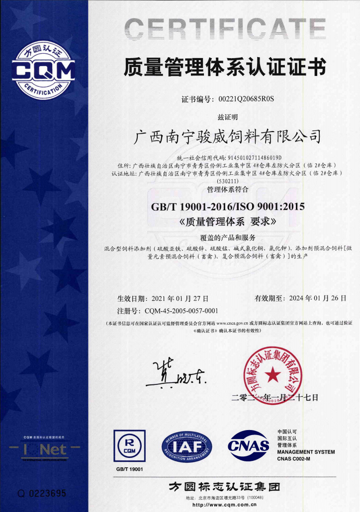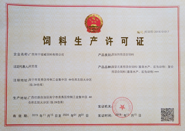 駿威—添加劑預混合飼料生產(chǎn)許可證